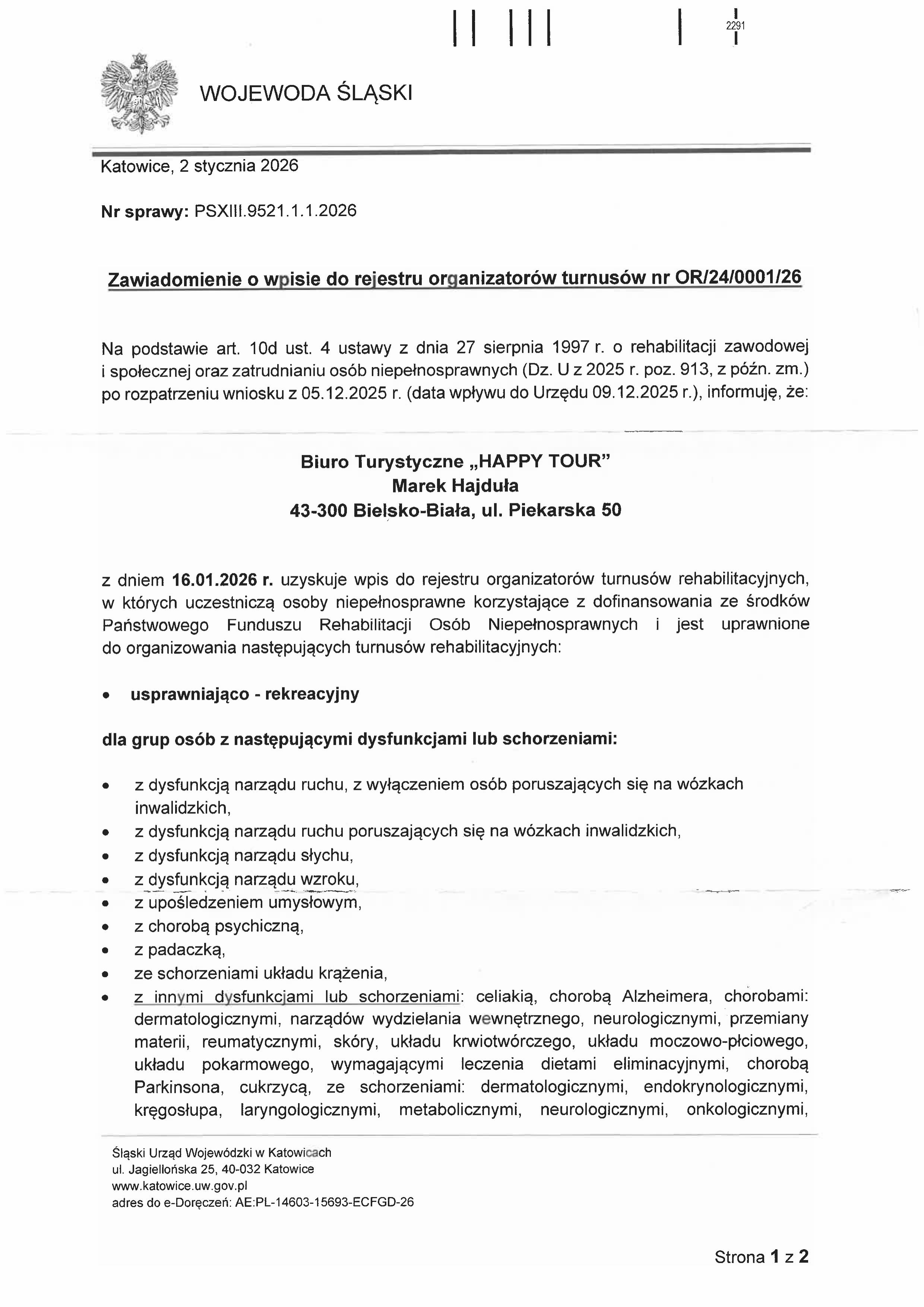 Biuro Turystyczne Happy Tour - Wpis OR/24/0001/26